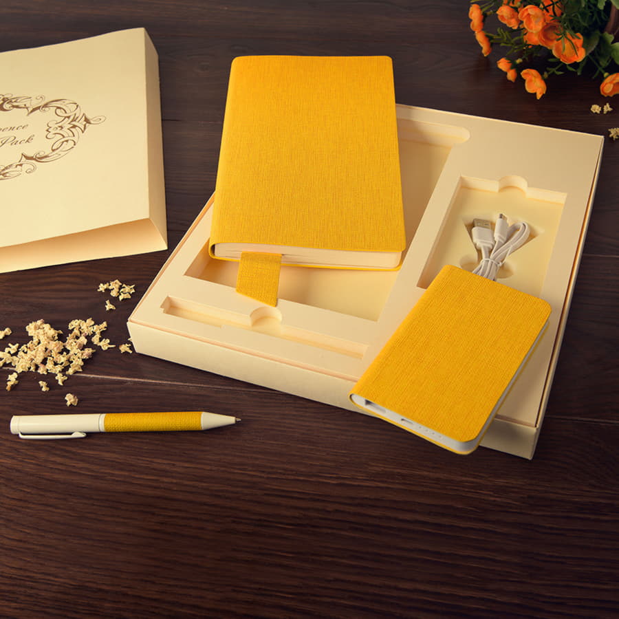Подарочный набор PROVENCE 1) Универсальное зарядное устройство PROVENCE 5000 mAh 2) Бизнес-блокнот Provence, формат А5, в клетку 3) Металлическая ручка Provence 4)Коробка из дизайнерского картона Торито, 260 гр, слоновая кость, тиснение лен. Внутри ложемент из изолона, кашированный бумагой Торито, слоновая кость, тиснение лен.