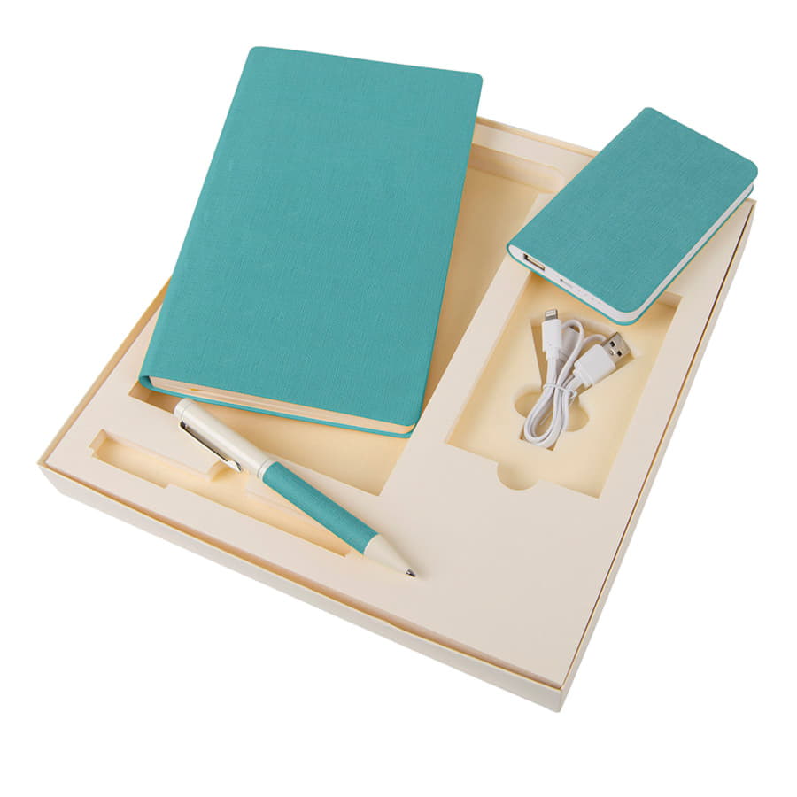 Набор подарочный PROVENCE; Универсальный аккумулятор(5000мАh), блокнот и ручка; голубой, шт, голубой, бежевый