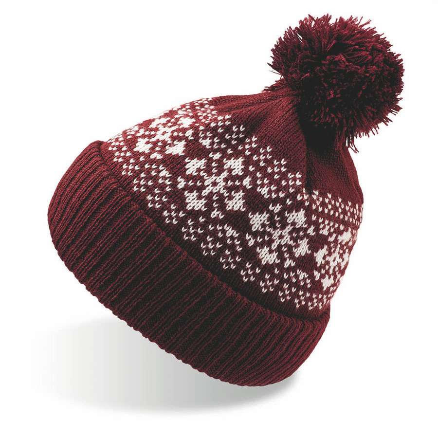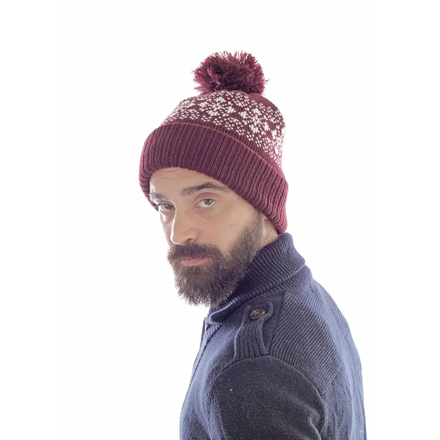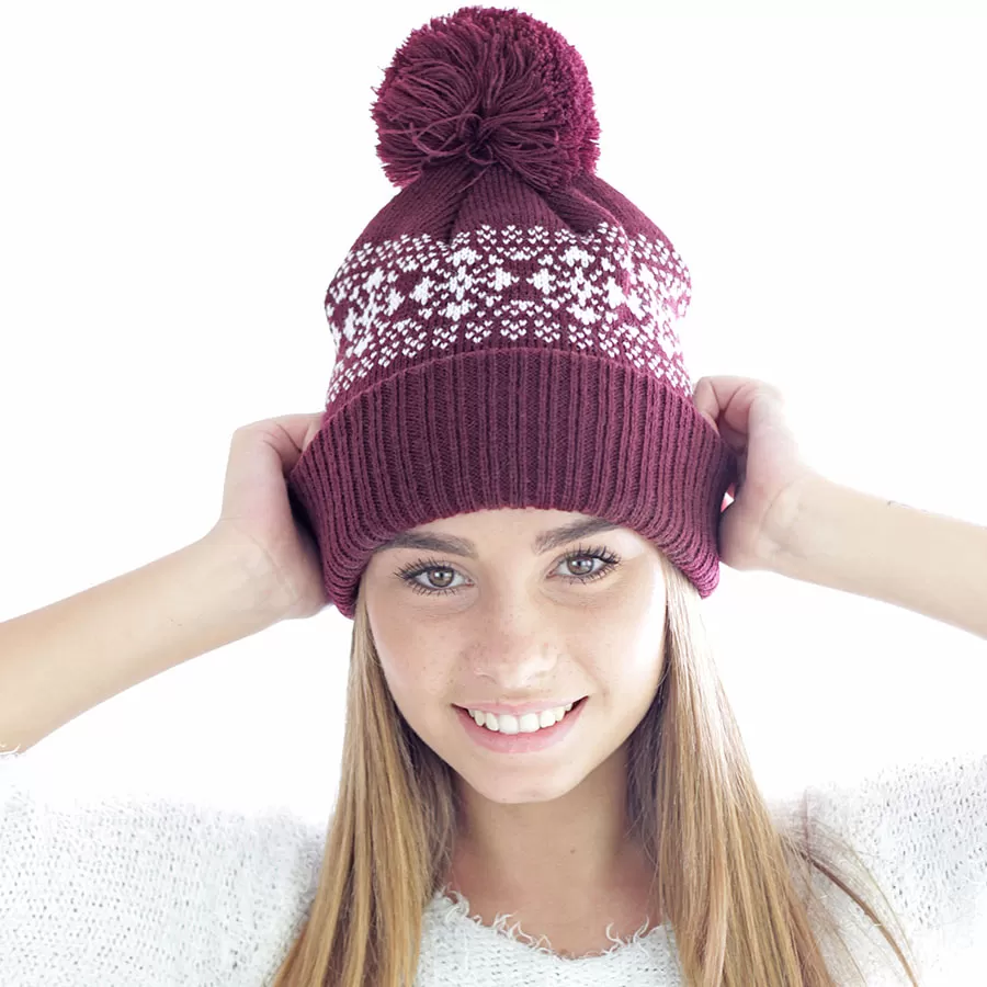 Шапка вязаная с снежинками и помпоном 'FLAKE'_бордо, 100% акрил, бордовый