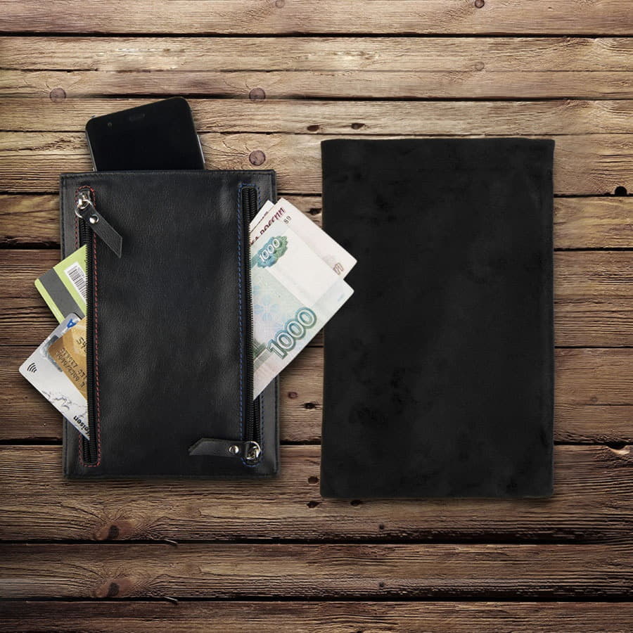Большой внутренний карман на кнопке. Можно использовать для смартфона или для паспорта.