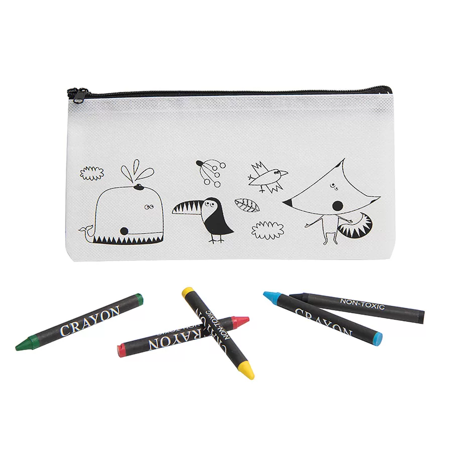 Пенал для раскрашивания SKINGA с восковыми мелками (5шт), 22х11 см, полиэстер, белый