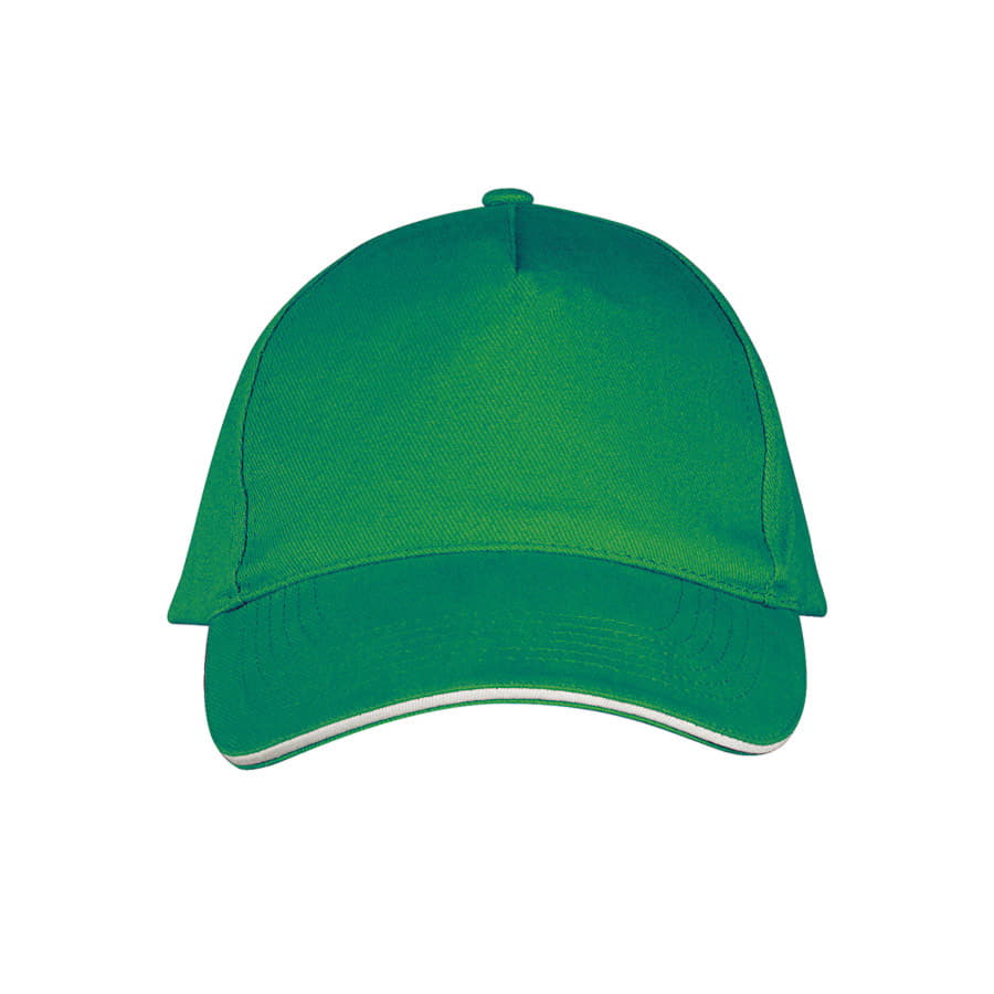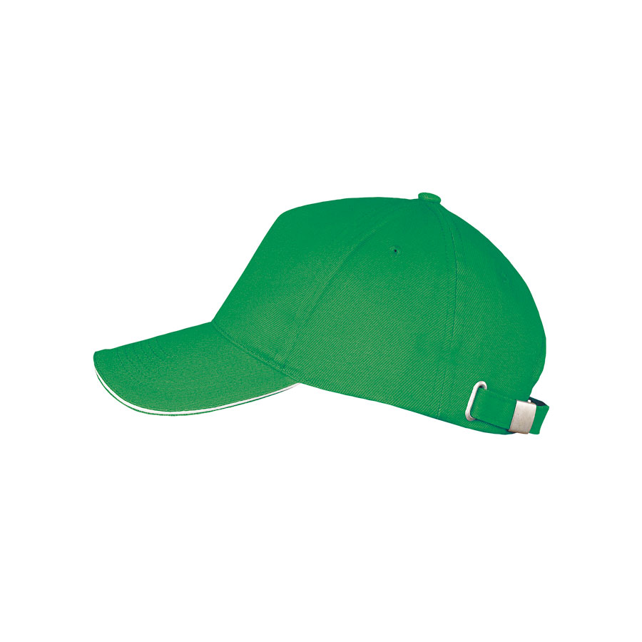 Бейсболка LONG BEACH, 5 клиньев, металлическая застежка, ярко-зеленый, белый