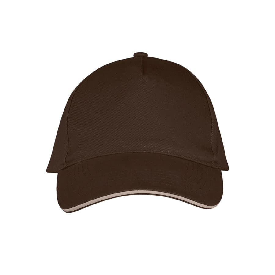 Бейсболка LONG BEACH, 5 клиньев, металлическая застежка, коричневый, бежевый