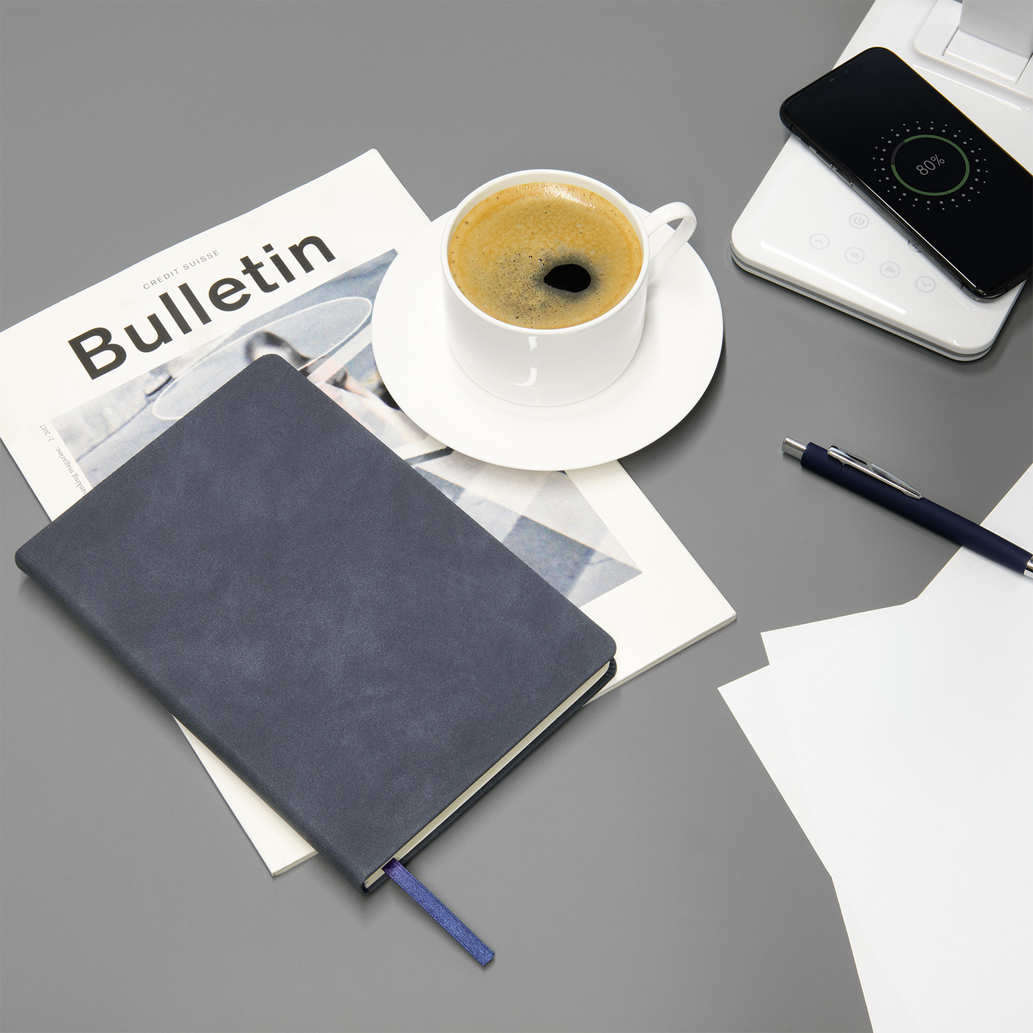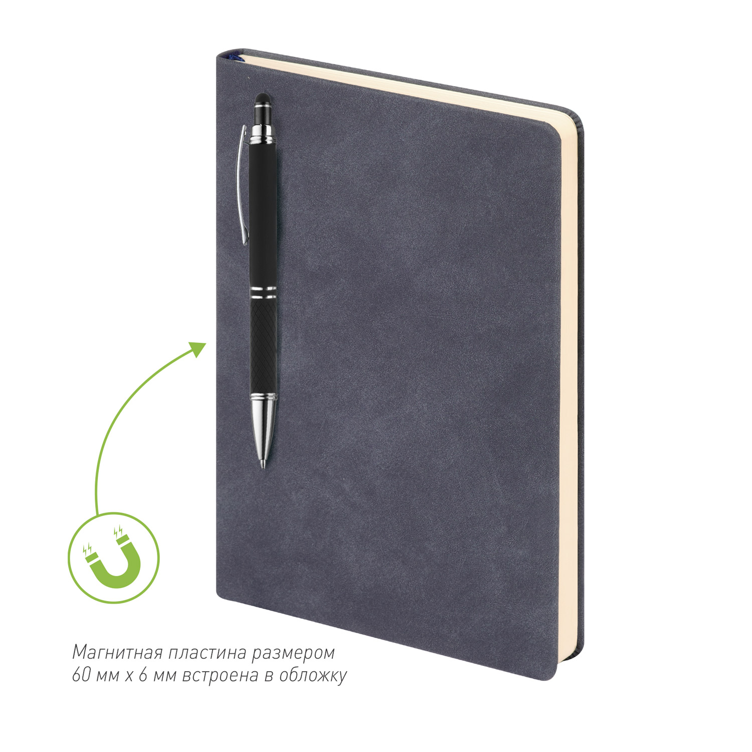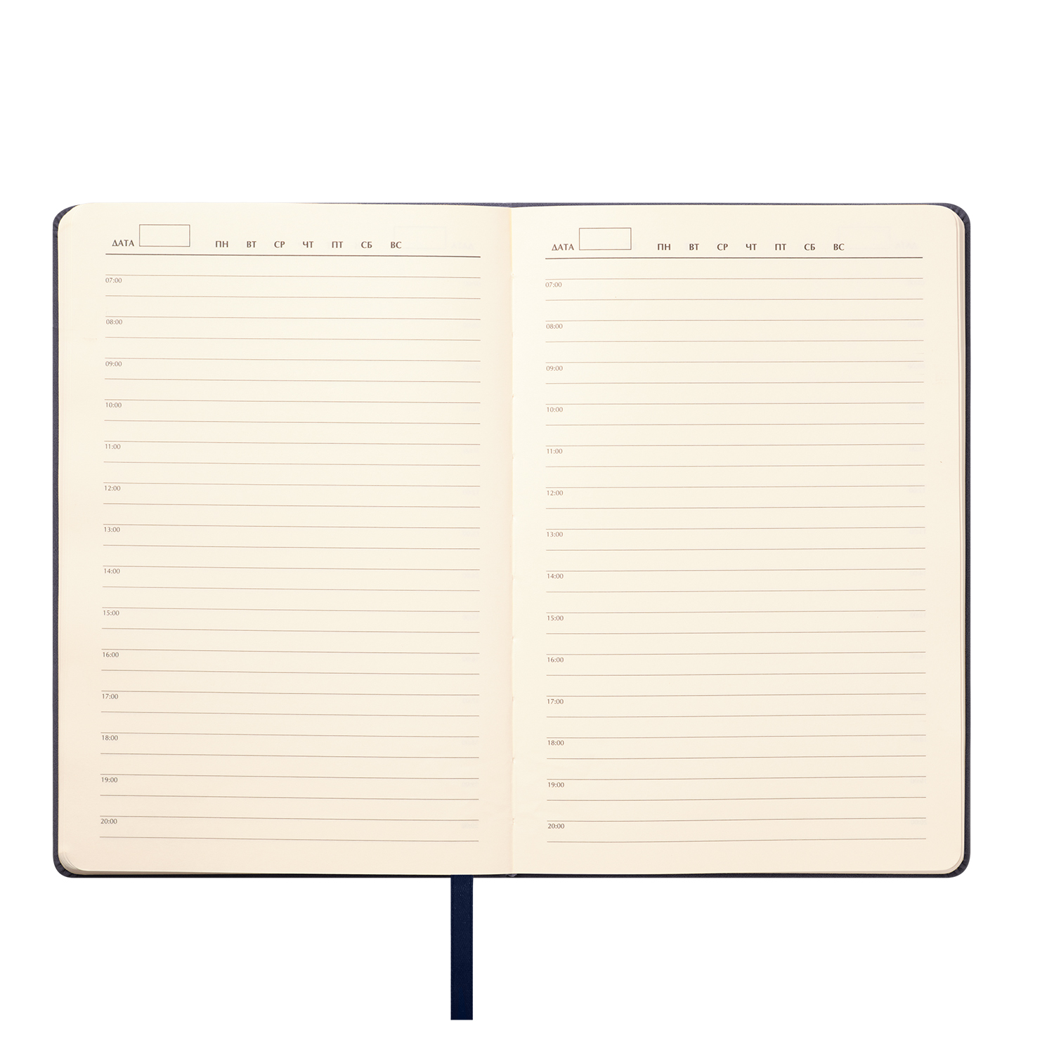 Недатированный ежедневник Portobello коллекции Stella выполнен в жесткой обложке из качественной искусственной кожи со скругленными уголками. Важный элемент коллекции – встроенный магнит, удерживающий ручку. Теперь она будет всегда под рукой. Тактильно очень приятный материал обложки, напоминающий натуральную замшу, придает ежедневнику строгий, но стильный внешний вид. Элегантный и слегка приглушенный темно-синий цвет обложки, гармонично дополняется спокойным кремовым срезом, форзацем и нахзацем. Кремовые страницы со скругленными уголками из гладкого шелковистого офсета. Одинарное атласное ляссе в тон обложке с легким блеском.