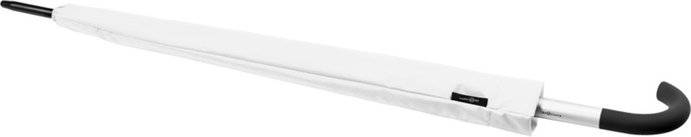 Эксклюзивный автоматический зонт. Металлическая трость и спицы. Специальная ручка, позволяющая вешать зонт на стол. Прорезиненная изогнутая ручка с алюминиевыми деталями. Чехол под цвет зонта. Полиэстер Эпонж.