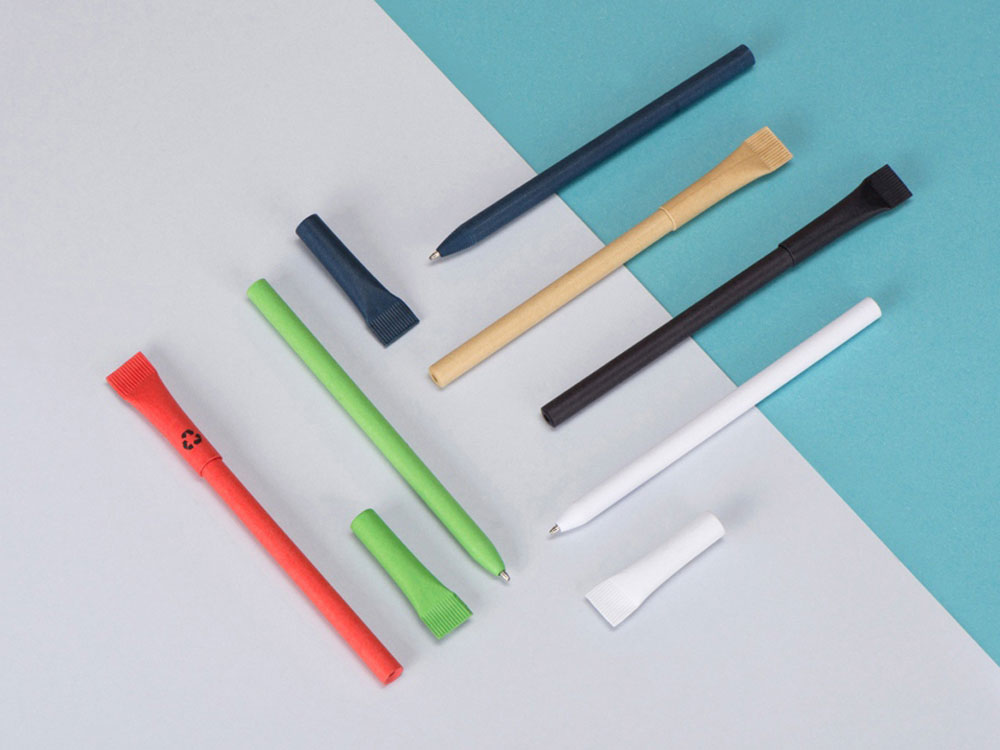Ручка с корпусом из переработанной бумаги. Оригинальный дизайн, приятная на ощупь поверхность. Переработанная бумага позволяет легко делать нанесение как на теле ручки, так и на колпачке.