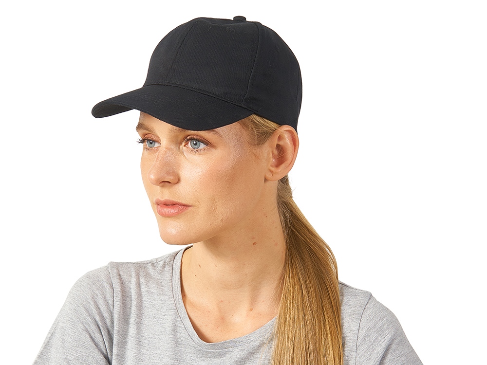 6 панельная бейсболка из переработанного полиэстера. Вышитые люверсы и застежка на липучку для большей эргономичности модели.