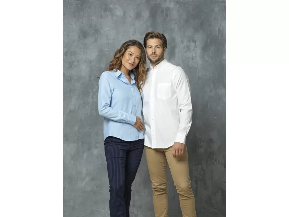 Pollux мужская рубашка с длинными рукавами. Отрывной-отрезной лейбл. Нагрудный карман. Уголки воротника продублированы пуговицами. Регулируемая манжета рукава с одной складкой. Пуговицы в тон. Встречная складка на спинке. Ткань Оксфорд 55% хлопка, 45% полиэстера, 130гр.