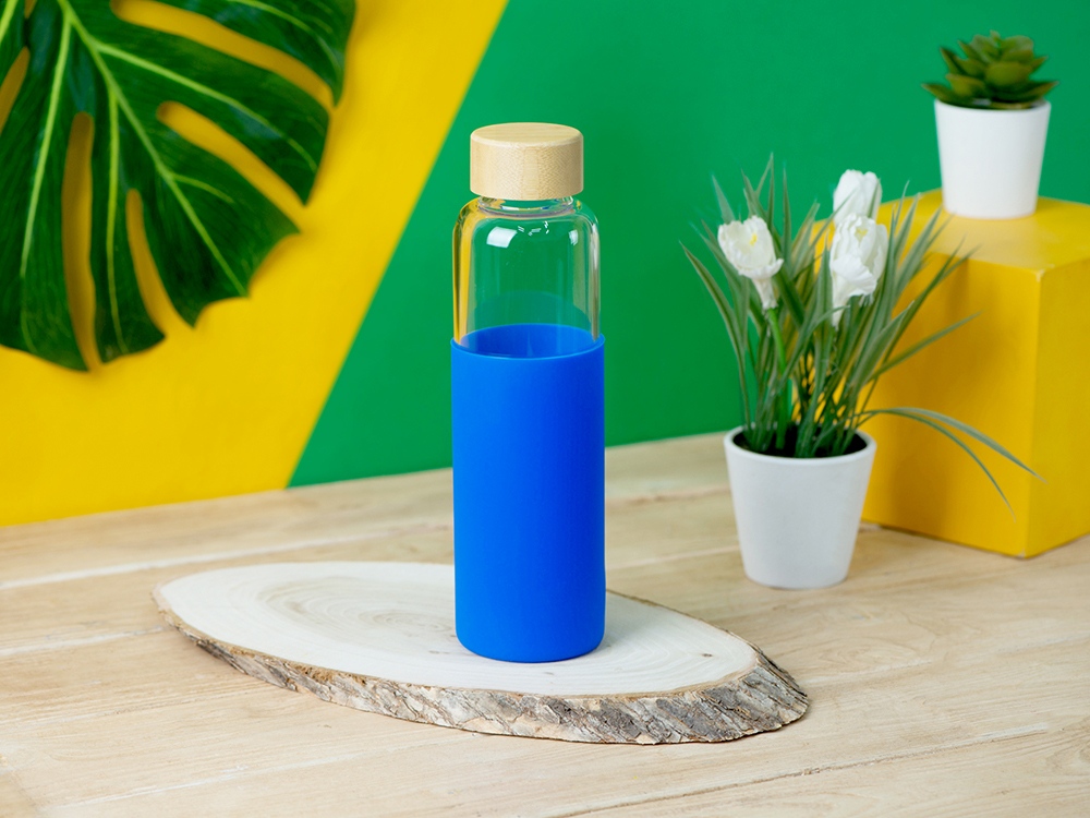 Стильная бутылка для воды сразу привлечет внимание к себе, где бы Вы ее ни достали, так как представляет собой идеальную композицию из трех экологичных материалов. Бутылка выполнена из качественного боросиликатного стекла, поэтому абсолютно не влияет на вкус и запах напитков. Силиконовый чехол поможет защитить бутылку от повреждений и легких падений, также чехол выполняет анти-скользящую функцию. Крышка выполнена из натурального бамбука. Не замораживайте и не используйте бутылку в микроволновке. Бутылка легко моется. Объем 550мл.