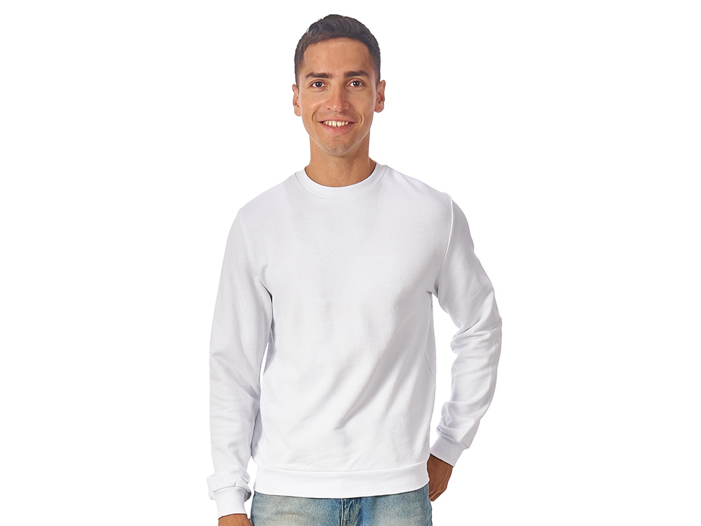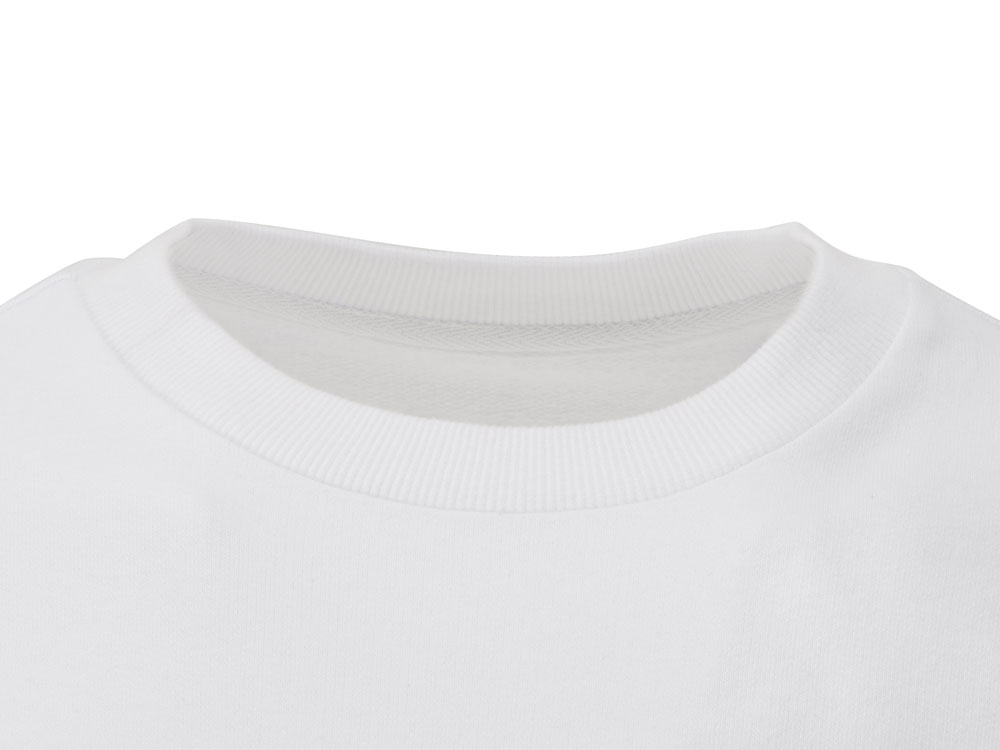 Свитшот из плотного хлопкового футера. Горловина, манжеты и низ отделан рибом 2х2. Горловина спинки внутри дополнительно укреплена тесьмой с выработкой елочка. Полотно из утяжеленного хлопкового футера внутри с петельками без начеса.