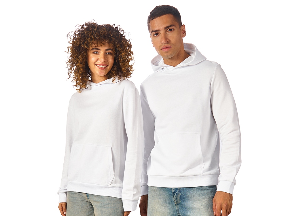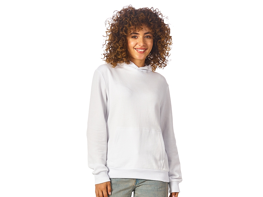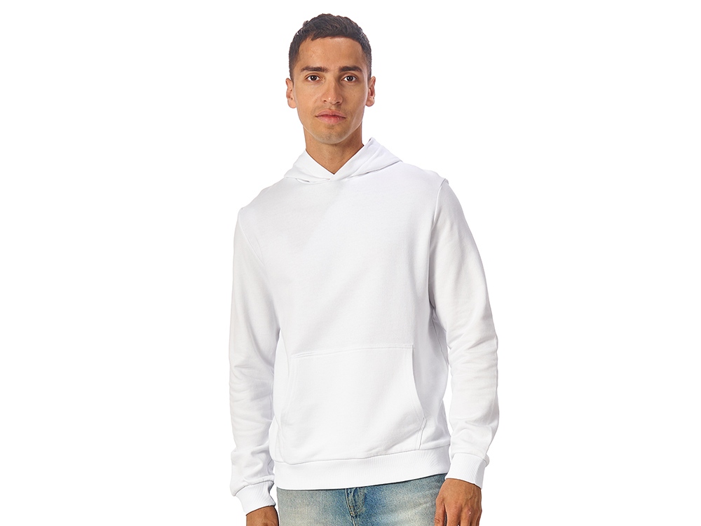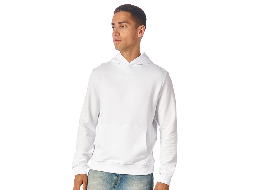 Толстовка с капюшоном (худи) из плотного хлопкового футера. В капюшоне подкладка в тон, а горловина спинки дополнительно укреплена тесьмой с выделкой елочка. Капюшон без шнурков – ничего не отвлекает от вашего брендирования. Манжеты и низ изделия отделаны рибом 2х2. Глубокий комфортный карман кенгуру на полочке. Полотно из утяжеленного хлопкового футера внутри с петельками без начеса.