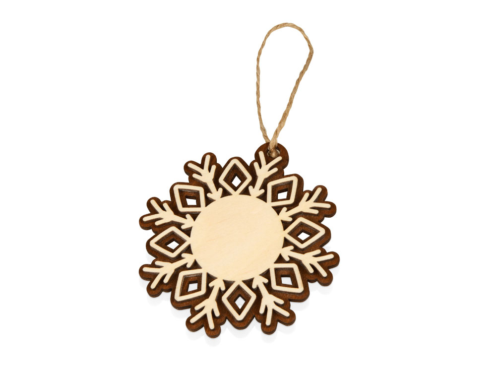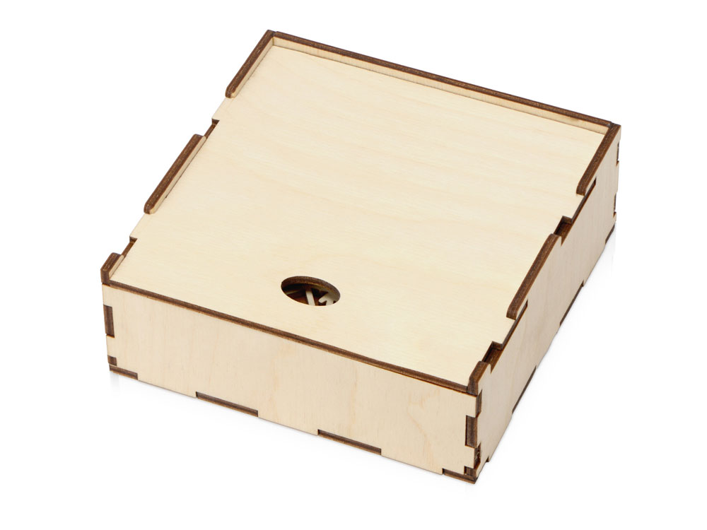 Набор из пяти новогодних подвесок упакован в коробку-футляр из березовой фанеры. Брендировать можно как сами игрушки, так и упаковку, причем помимо традиционной для фанеры гравировки предусмотрена возможность использования и других методов нанесения. Подвески будут напоминать о вашем бренде каждое рождество, создавая праздничное настроение, а футляр в дальнейшем может использоваться в качестве шкатулки для мелочей или для рукоделия.