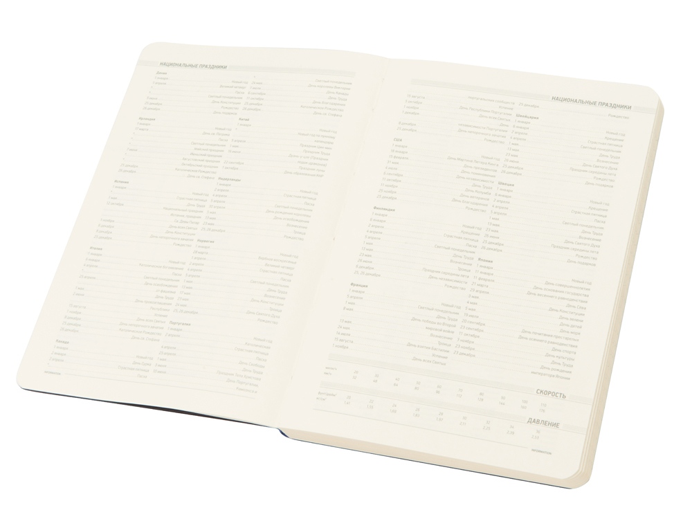 В ежедневнике Megapolis Flex есть полезная справочная информация и телефонная книга, а также страницы для записи идей, мыслей и составления рабочих планов. Для изготовления страниц используется качественный бежевый офсет повышенной плотности (70 г/кв м). Блок не привязан к конкретным датам – они указываются в выделенном поле вверху страницы. Тонированная бумага не дает глазам утомиться даже при длительной работе.
