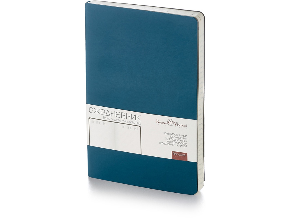 Недатированный ежедневник Megapolis Flex от бренда Bruno Visconti - это качественный корпоративный подарок по выгодной цене, произведенный специально под персонализацию. Представлен в универсальном формате А5 и состоит из 272 страниц. Элегантная закругленная flex обложка из гладкого кожзама имеет гибкую конструкцию и приятна на ощупь. А интегральный переплет позволяет сэкономить место в деловой сумке или портфеле – ежедневник можно просто свернуть в трубку или согнуть пополам.
