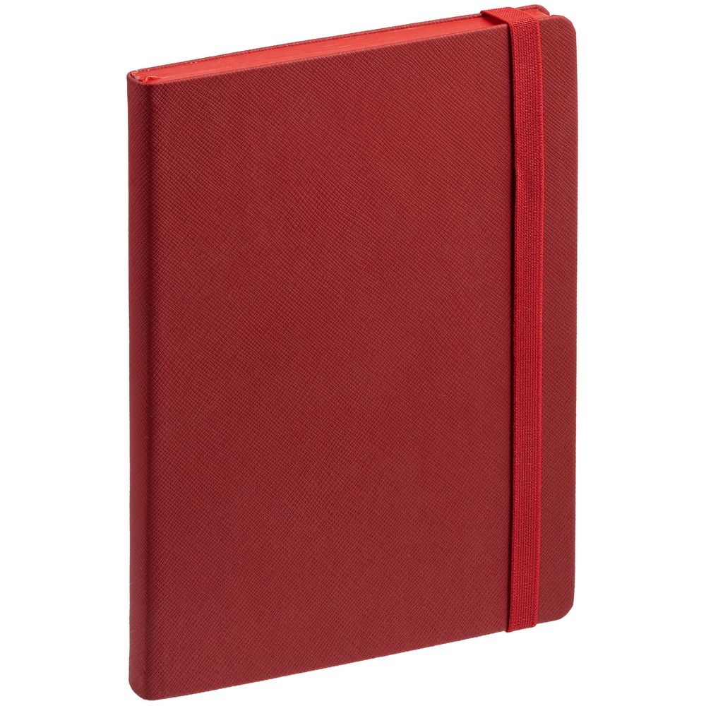 Ежедневник с твердой обложкой выполнен из материала Nice Touch, красный PP, и дополнен резинкой шириной 1 см и ляссе красного цвета.