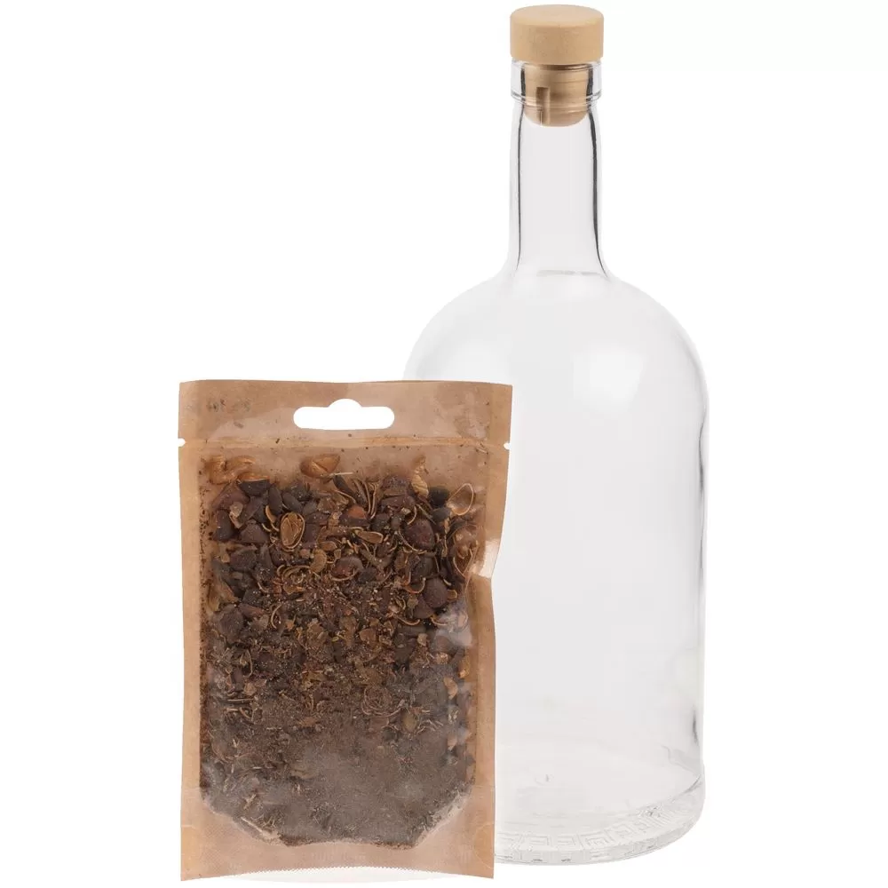 В состав набора входят: бутылка емкостью 1 литр с пробкой, набор трав и специй для настойки «Алтайская кедровая», коробка с ложементом.
