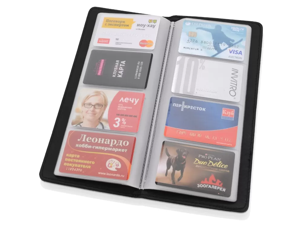 Приятная на ощупь поверхность, вместительность и классический стиль – такими характеристиками обладает визитница Мерилин. С помощью этого аксессуара вы сможете легко организовать порядок среди дисконтных и визитных карточек.