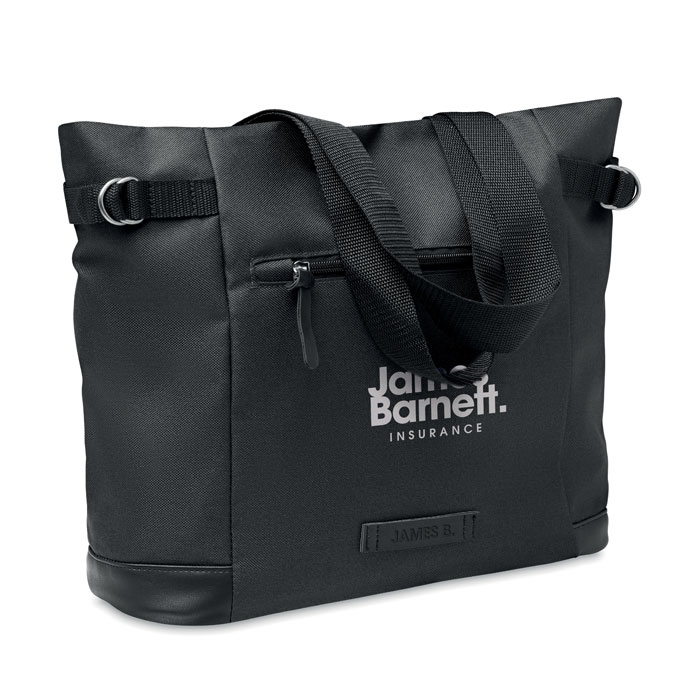 Сумка для покупок из двухцветного переработанного полиэтилена (RPET) 600D с передним карманом на молнии и внутренним карманом на магнитной кнопке.