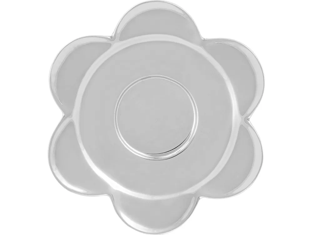 Необычной формы фарфоровая чашка на 220 мл и чайное блюдце в виде цветочка образуют оригинальную чайную пару, из которой очень приятно пить кофе или чай. Нежная бело-серебристая цветовая гамма позволяет нанести достаточно яркую персонализацию и превратить чайную пару в часть корпоративной атрибутики.