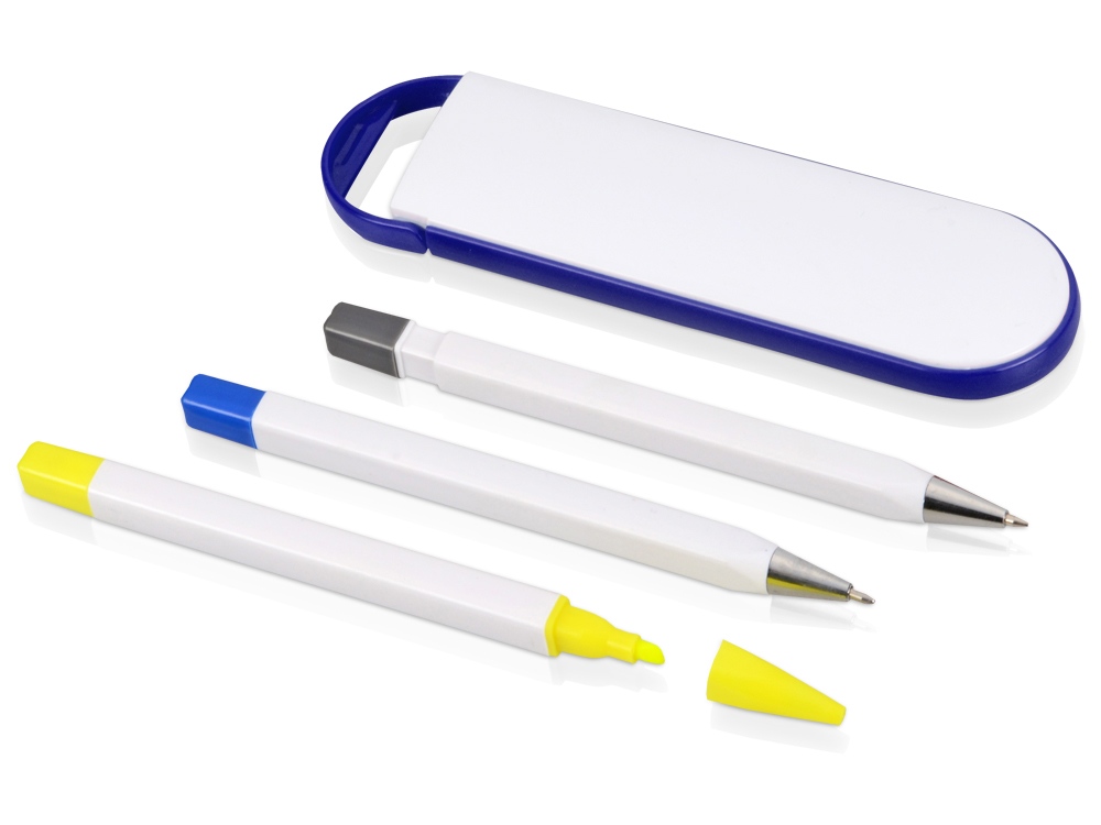 Набор Квартет: ручка шариковая, карандаш и маркер, белый/синий