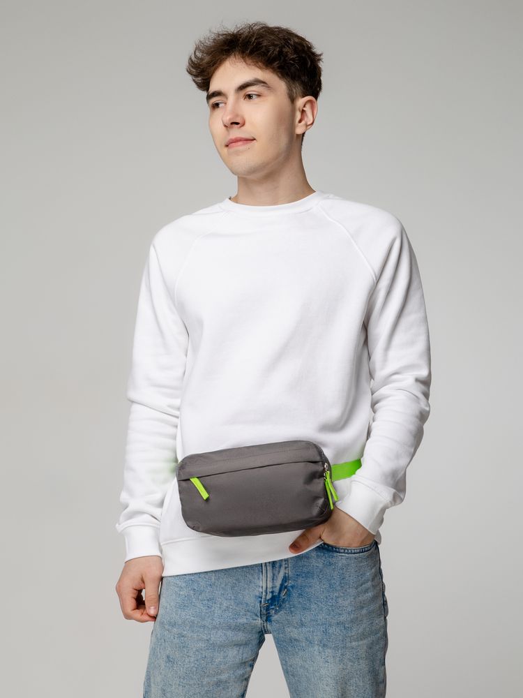 Поясная сумка Sensa, серая с салатовым
