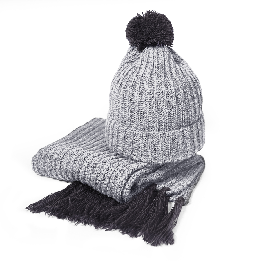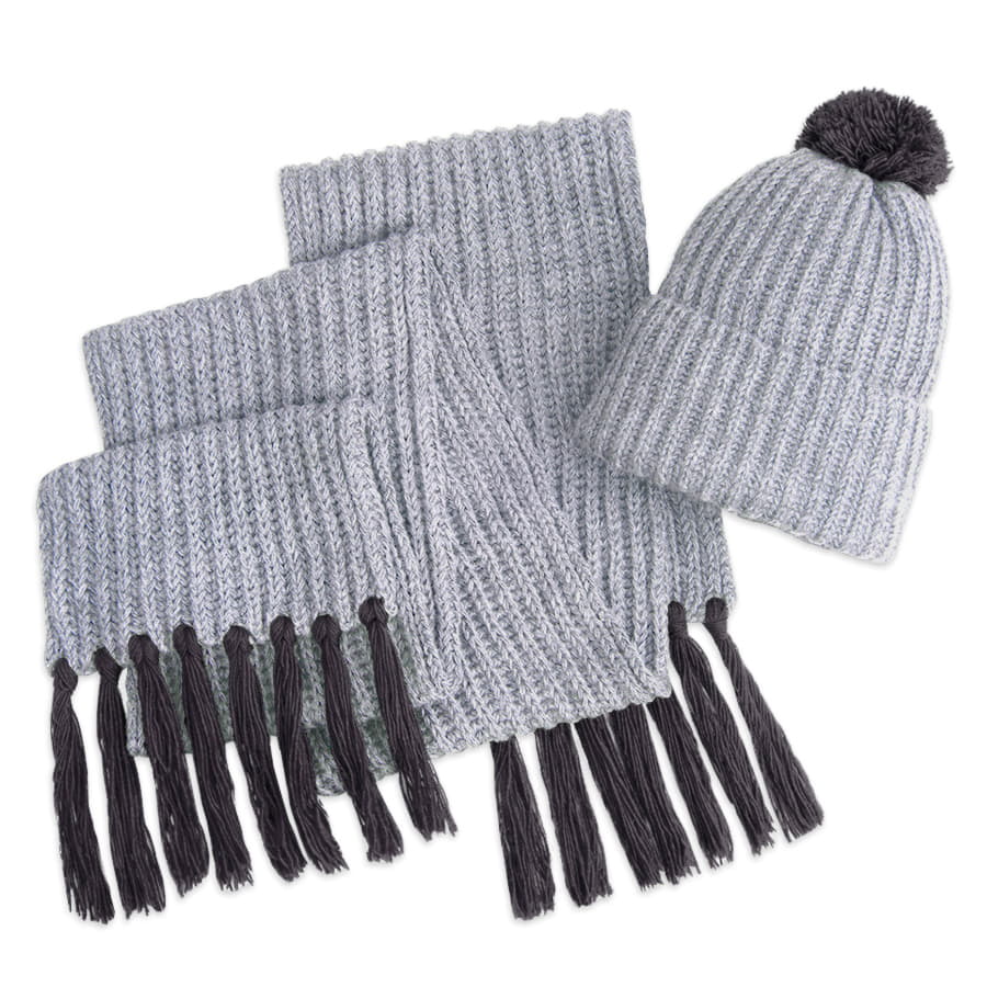 Шапка и шарф GoSnow с ярким пoмпоном и кисточками, серый
