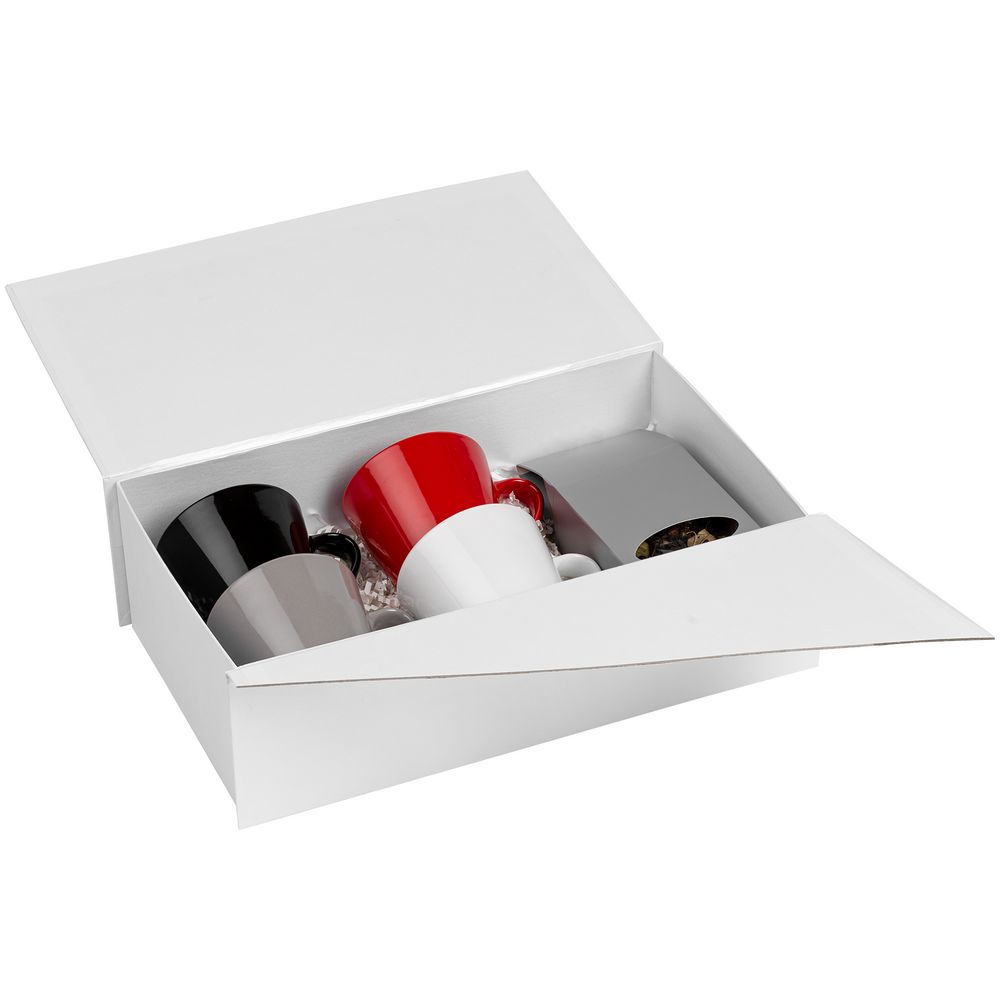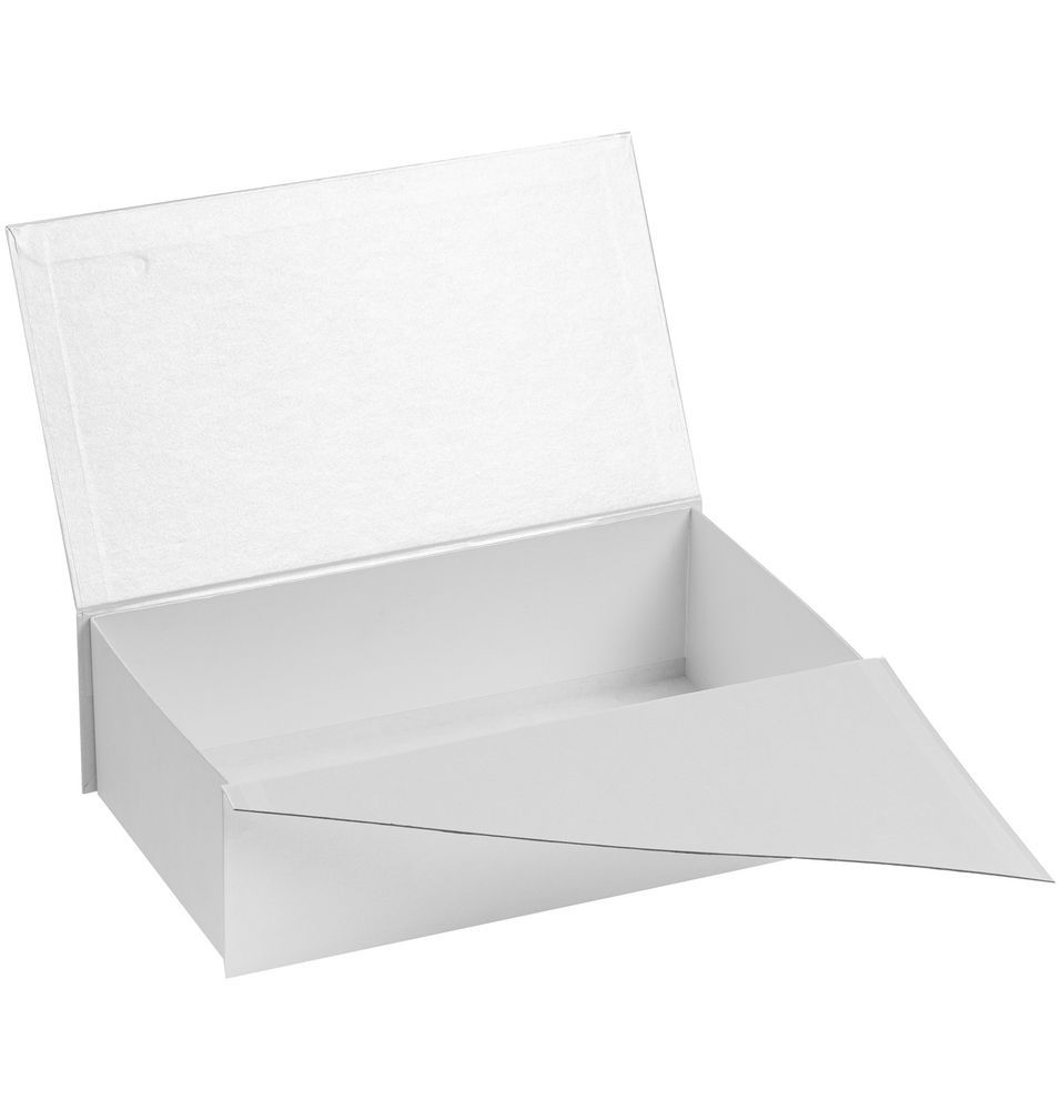 Коробка изготовлена из переплетного картона, кашированного дизайнерской бумагой Majestic.