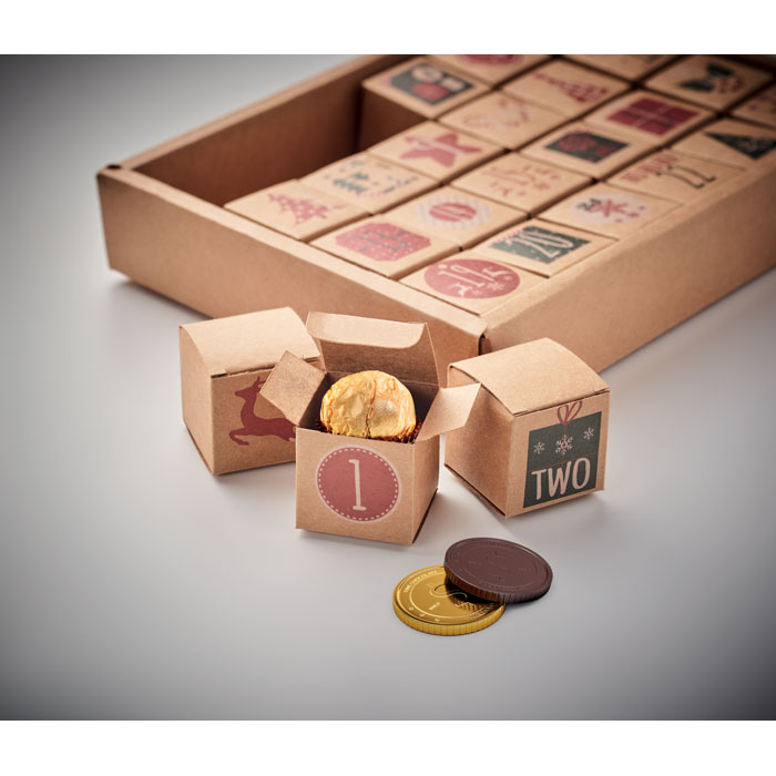 Набор из 24 предметов для адвент-календаря из крафт-бумаги. 300 гр/м².