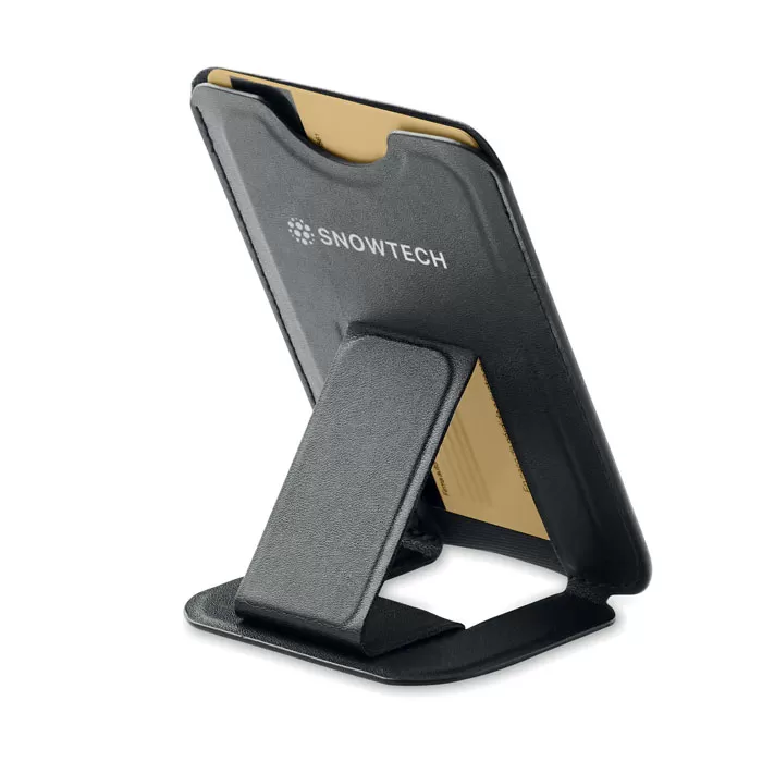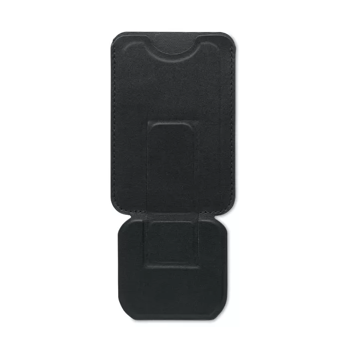 Чехол для кредитных карт из полиуретана с магнитной застежкой и функцией подставки для телефона.