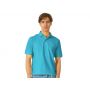 Поло с коротким рукавом, воротник из риба 1х1, планка застегивается на 3 пуговицы.