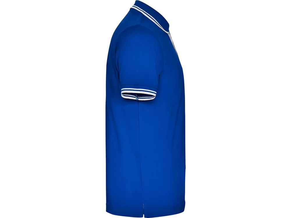 Поло с коротким рукавом. Воротник и манжеты из риба 1х1 с отделкой двойной контрастной плоской. Внутренняя планка контрастного цвета, застежка на 3 пуговицы. Разрезы в боковых швах. Премиальное плотное пике 230 гр.