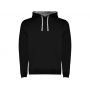 Худи с капюшоном и шнурками. Отделка горловины спинки внутри тесьмой, Риб 1х1 по низу изделия и манжетам. Карман кенгуру.