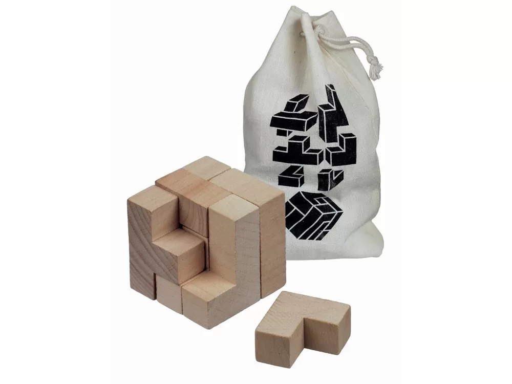 Головоломка Solfee. Деревянная квадратная головоломка в хлопковом мешочке 10 х 18 см. Головоломка состоит из 7-ми частей. Дерево.