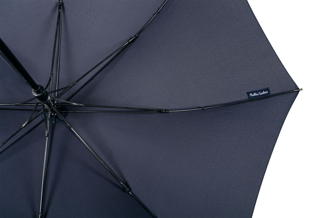 Тефлоновое покрытие ткани отталкивает воду и грязь, обеспечивая долговечность и легкий уход. Усиленная ветрозащитная конструкция выдерживает даже сильные порывы ветра, а автоматическое открывание делает использование максимально удобным. Эргономичная ручка из матового пластика с изящным дизайном и противоскользящим верхом добавляет комфорта. Зонт упакован в стильный чехол из той же ткани — это не только практично, но и элегантно.