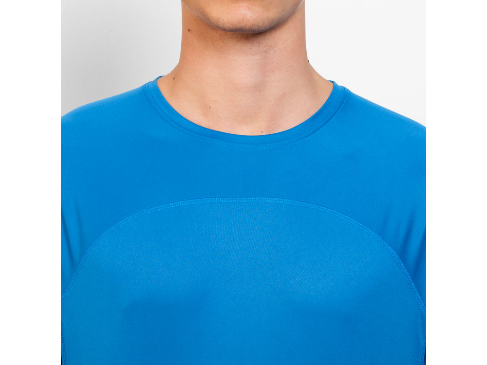 Спортивная футболка унисекс из технологичного полотна. Круглый вырез горловины укреплен со стороны спинки контрастной тесьмой. Спинка со вставкой из 3D сетки. Легко сохнущая дышащая модель