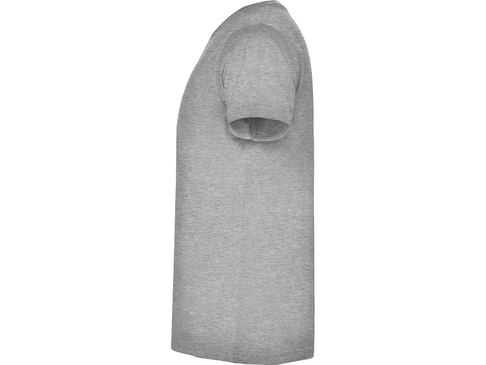 Мужская футболка без боковых швов с коротким рукавом и V-образным вырезом горловины, отделанном рибом 1х1. Горловина и плечевые швы дополнительно укреплены тесьмой.