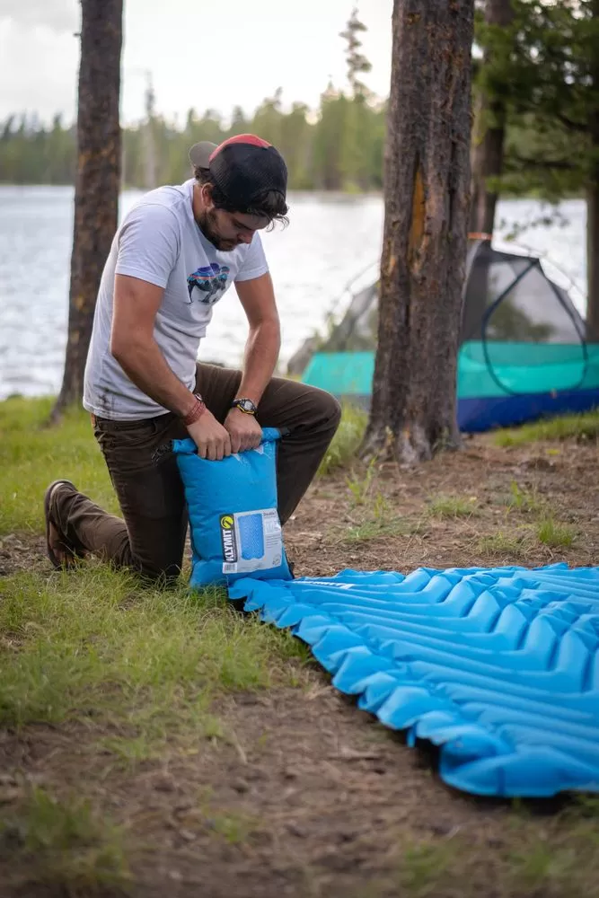 Отличное решение для путешествующих вдвоем — туристический коврик Klymit Static V Double с анатомическим дизайном. Изолированная конструкция двух половин коврика обеспечивает спокойный сон для каждого отдыхающего.