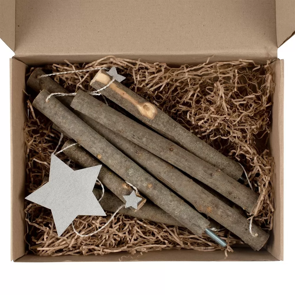 Elki-Palki собирается в пару движений: достаточно только развернуть связанные веревками брусья и собрать нижние детали. Небольшие елочные игрушки выигрышно дополнят набор: рекомендуем добавить их в подарочную коробку Elki-Palki.Набор поставлется в индивидуальной картонной коробке.