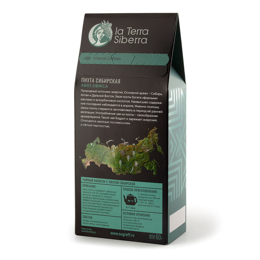 Чайный напиток со специями из серии 'La Terra Siberra' с пихтой сибирской 60 гр., зеленый, черный