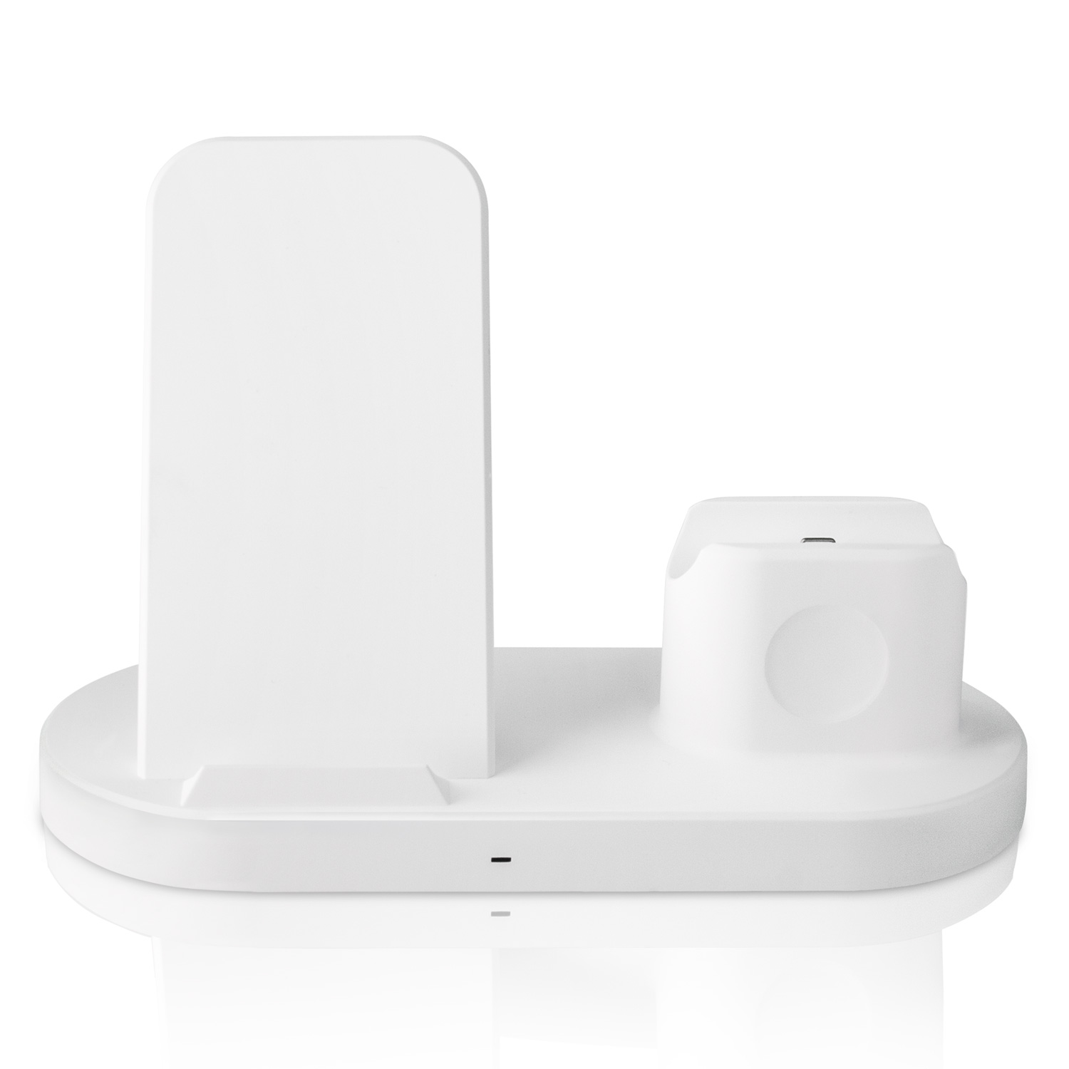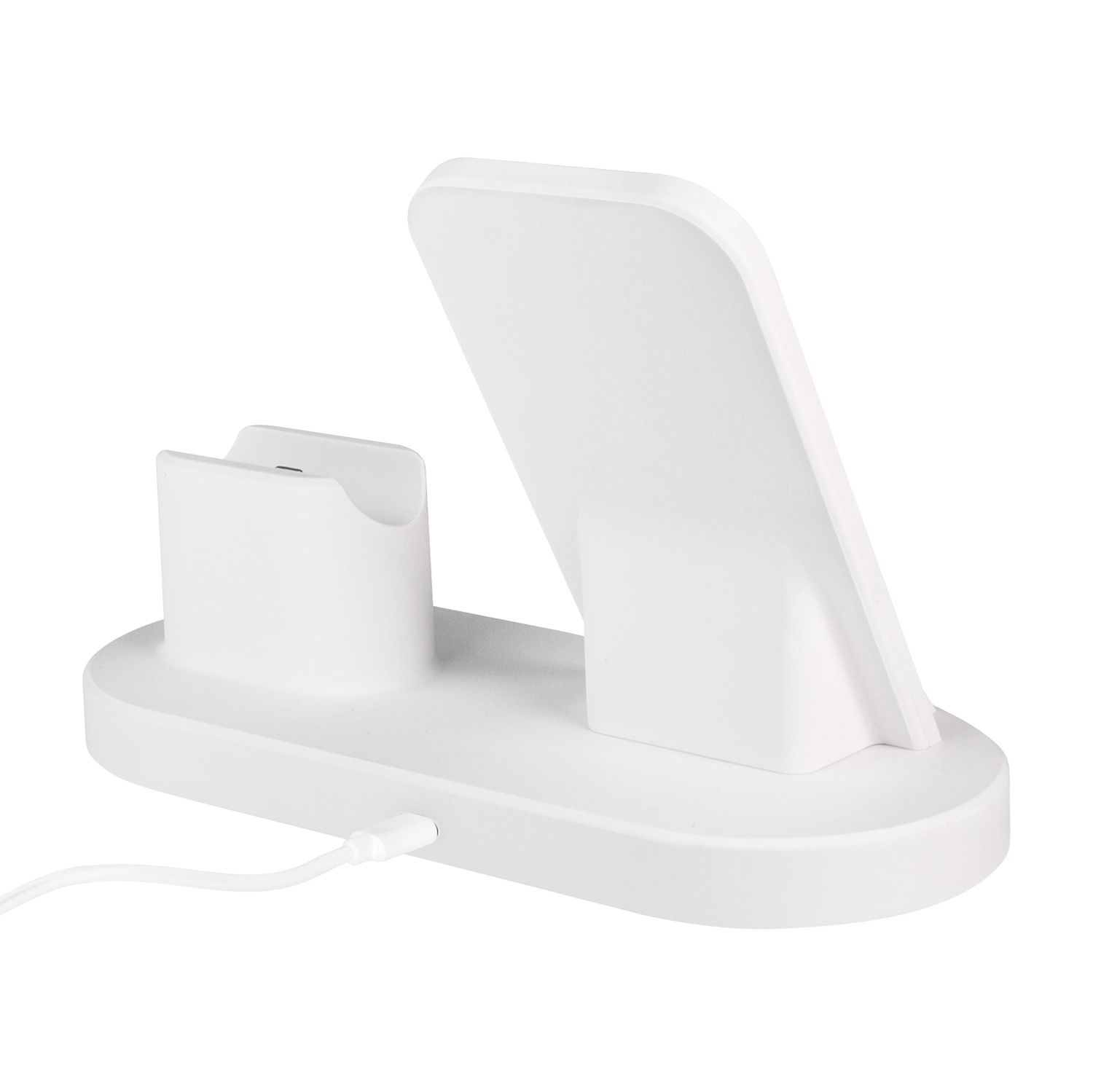 В эпоху гаджетов важно всегда быть заряженным.Беспроводная зарядная станция Prime позволяет заряжать сразу 3 гаджета одновременно.Аксессуар выполнен в минималистичном дизайне в сочетании с покрытием soft-touch, что позволяет ему органично вписаться в современный интерьер квартиры или офиса. Кроме того, он помогает уменьшить количество проводов на рабочем столе или прикроватной тумбе.Зарядная станция 3в1:– беспроводная зарядка телефона 10W– беспроводная зарядка часов 2.5W– зарядка наушников Apple 2.0WПРИМЕЧАНИЕ. Магнитные или металлические насадки и другие посторонние предметы будут препятствовать зарядке.Рекомендуется использовать адаптер 9V/2A или 12V/1.5A.Характеристики:Вход Type-C: 9V/2A, 12V/2A (max)Выход: 5W/ 7.5W/ 10W (max)Выход часы: 2.5WВыход наушники (lightning): 2.0WДистанция передачи заряда: 5 mmРазмеры: 186 х 81 х 119 ммРазмеры в коробке: 191 х 123.5 х 85 ммВес без коробки: 157 гВ комплекте: подарочная коробка, инструкция на русском и английском языке, кабель Type-C (длина 1 метр)Совместимость:Смартфон: Apple, Samsung, Huawei, Xiaomi и тд (все телефоны с встроенной функцией беспроводной зарядки)Наушники: Airpods 1, 2, 3, 4Часы: iwatch 1, 2, 3, 4, 5, 6, 7Для обеспечения эффективной работы зарядной станции необходимо обеспечить входное напряжение- Компьютер со встроенной функцией быстрой зарядки PD (Power Delivery) или QC (Quick Charge) 3.0 USB version- Адаптер 9V/2A или 12V/2A