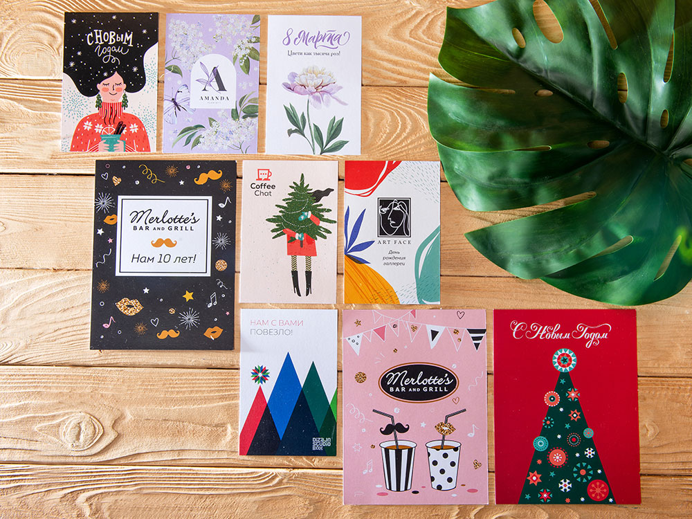Открытка формата А6 из высококачественной глянцевой бумаги 300 гр. Предназначена для нанесения индивидуального дизайна заказчика с одной или обеих сторон.