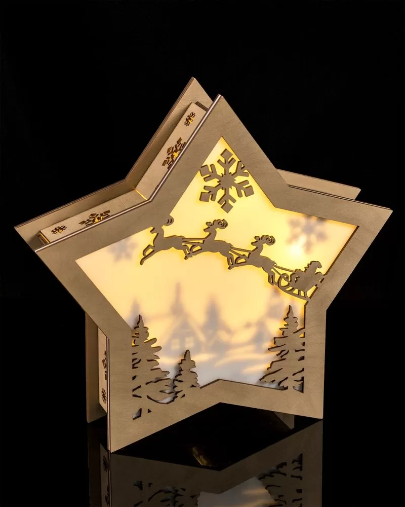 Рождественский светильник Xmas Mood задаст тон любимому празднику и создаст неповторимую атмосферу вокруг. Теплый мягкий свет, лаконичность дерева, чарующие блики стекла и главное, такие притягательные зимние сюжеты — и вот настоящий дух Рождества совсем рядом.