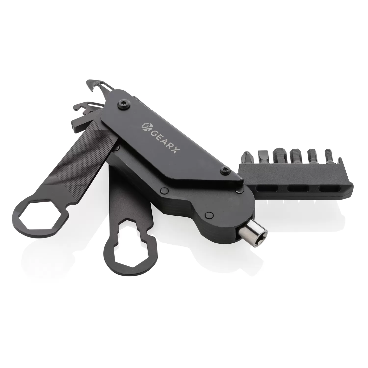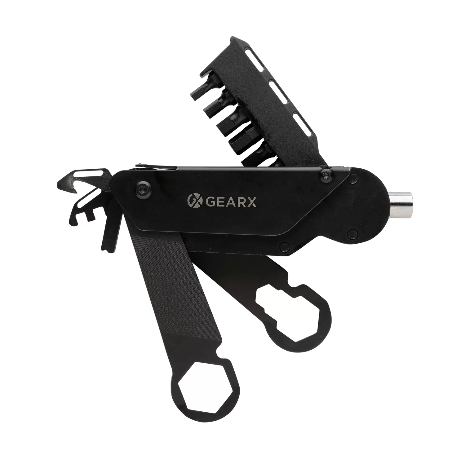 Если вам нужно что-то отремонтировать на вашем велосипеде, убедитесь, что вы делаете это стильно. Высококачественный велосипедный мультитул Gear X сочетает в себе все инструменты, необходимые для быстрого ремонта вашего велосипеда. Стильный черный корпус из алюминия отлично сочетается с инструментами из высококачественной нержавеющей стали 420 черного цвета. Надежные инструменты Gear X рассчитаны на долгий срок службы. 16 функций включают в себя: держатель для бит, встроенную кассету с битами (S2,5, S2 5 мм, S2 4 мм, S3 3 мм, S2 6 мм, S2 PH2), ключ для спиц 3,4/3,3, нож для коробок, адаптер, многофункциональный 18-мм ключ с замком, второй многофункциональный ключ 15/10/8 мм с замком, напильник. Уровень твердости бит 60-62 HRC. Уровень твердости инструментов 40-45 HRC. Поставляется в стильной подарочной коробке.