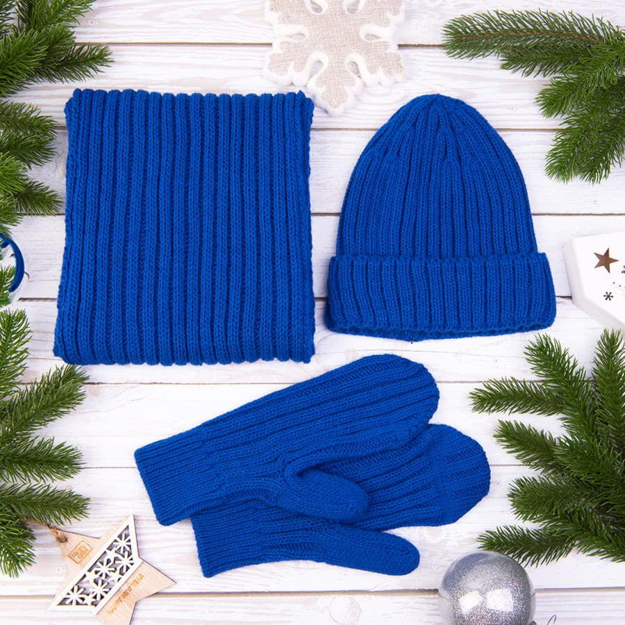 Шарф вязаный НАСВЯЗИ© шерсть/акрил, ярко-синий