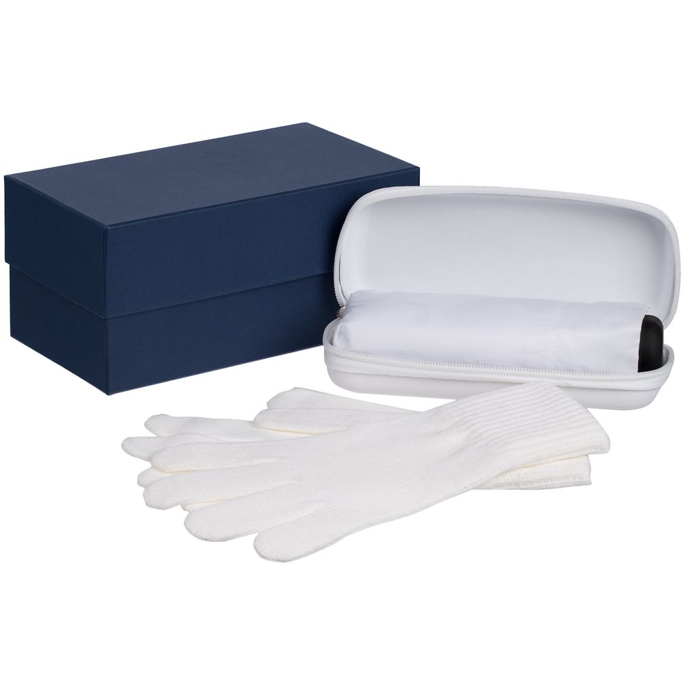Коробка выполнена из переплетного картона, кашированного гладкой дизайнерской бумагой Malmero «Темный синий».