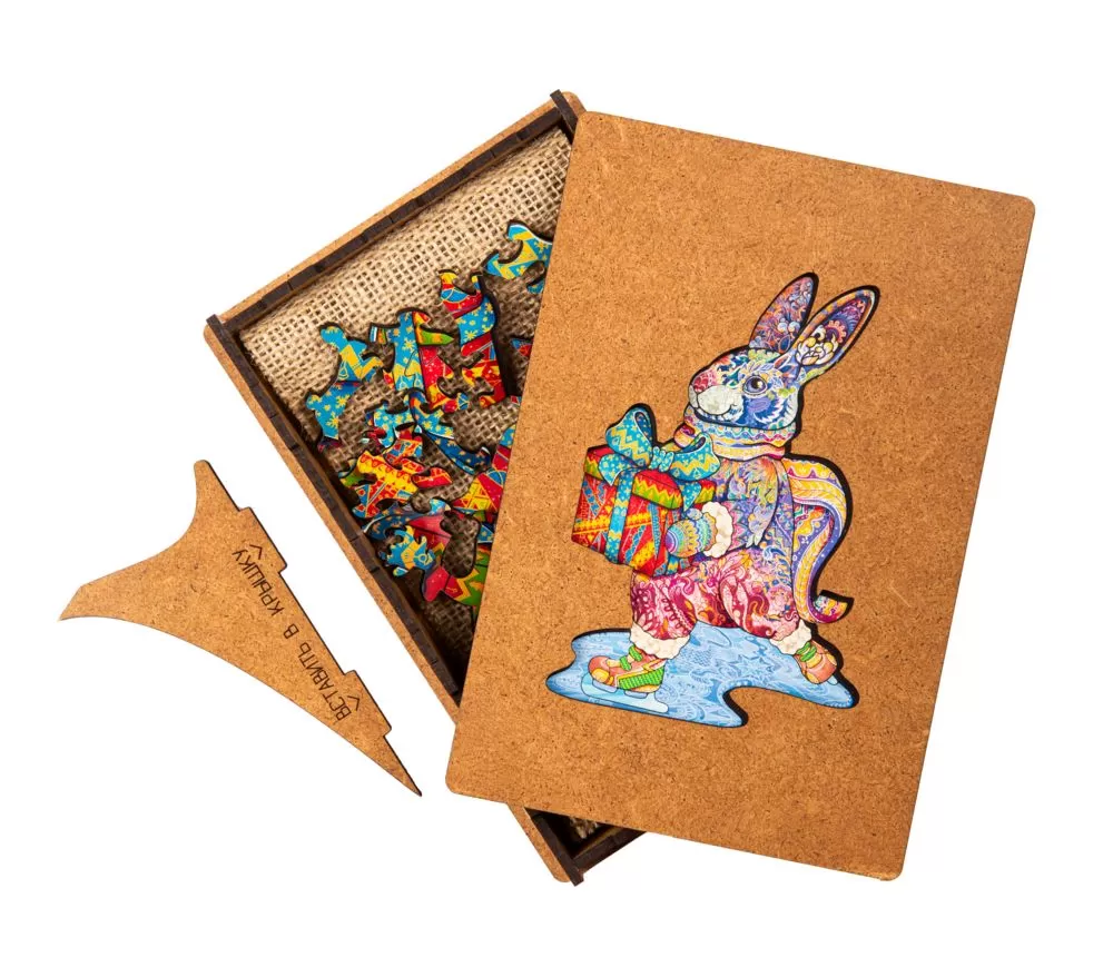 В Новый год нужно дарить настоящие сокровища! В этом сказочном сундучке прячется деревянный пазл из фигурных деталей с причудливыми узорами. Необычная форма деталей добавляет сложности и одновременно превращает процесс сборки в настоящее приключение.