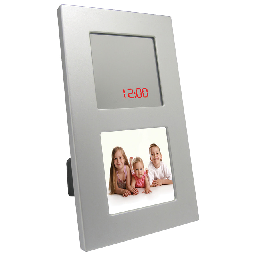 Часы-зеркало сенсорное с фоторамкой 'Позитив', серебристый