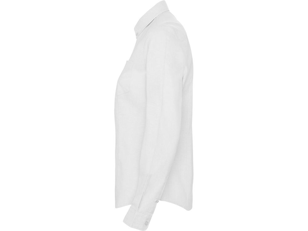 Женская рубашка с длинным рукавом, накладной карман слева. Планка на пуговицах. Отложной воротник на стойке продублирован пуговицами. Манжета регулируется по ширине с помощью 2-х пуговиц. Кокетка на спинке. Прилегающий силуэт.