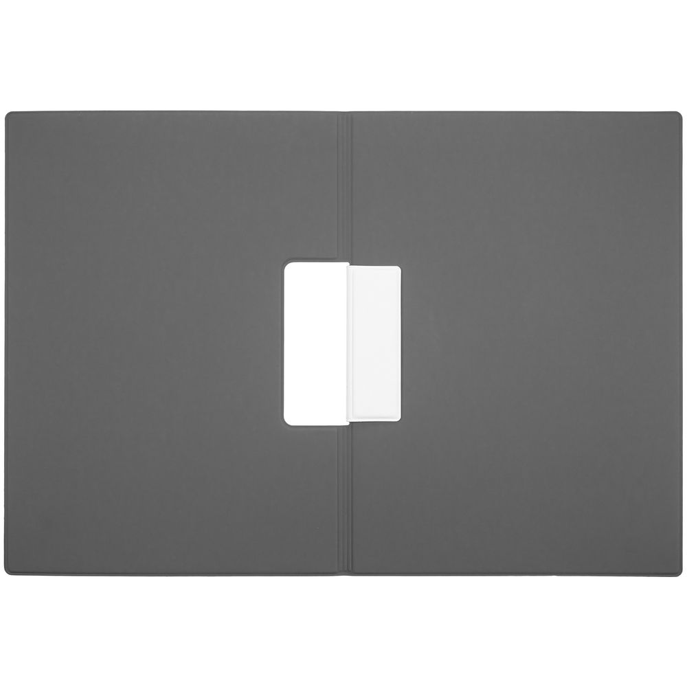 Папку можно использовать в стандартном вертикальном формате или перегнуть обложку и поставить в качестве таблички горизонтально. Магнитный клип удерживает до 10 листов.