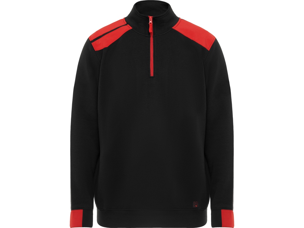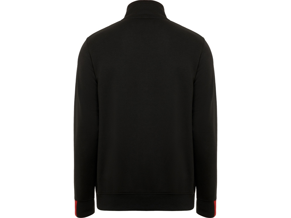 Толстовка с воротом- стойкой на молнии с сочетанием двух цветом. Половина манжет и низ изделия из рибового полотна 1х1. Укрепляющая отстрочка по внутреннему воротнику. Контрастные плечи , детали, молния и манжеты